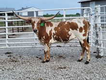 CONSIGNED TO LEGENDS SALE---TOP CALIBER DAUGHTER WITH VERY RARE TRIPLE TWIST HORN SET. BRED TO PCC CACTUS JACK-- 87'' TTT @3Y--- '. THOSE GENETICS SHOULD MAINTAIN THE TWIST AND TTT IN THE NEXT GENERATION'S PEDIGREE .