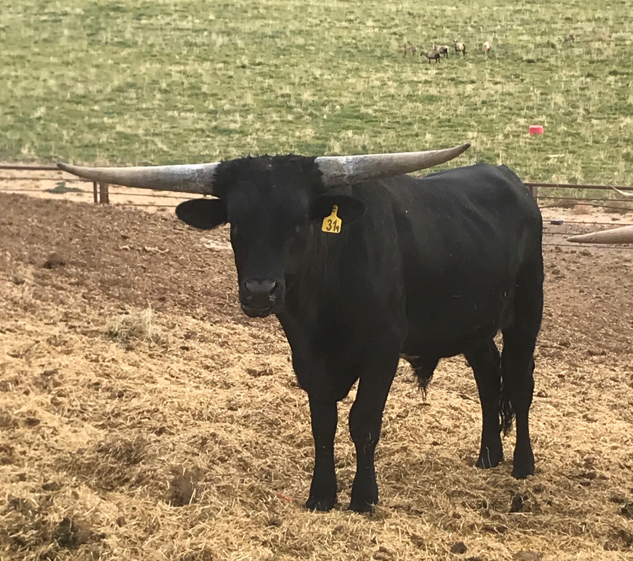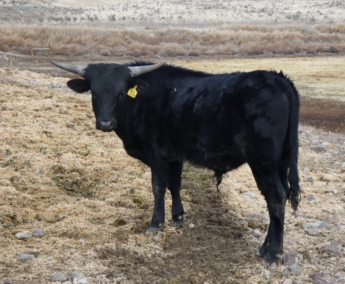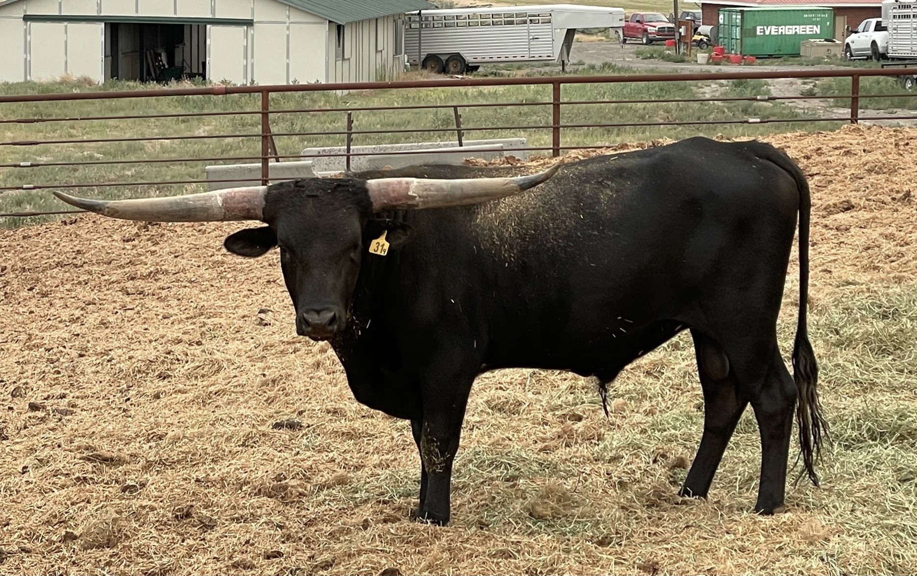 Solid black bull with a 95" sire out of a great Sharpshooter daughter.