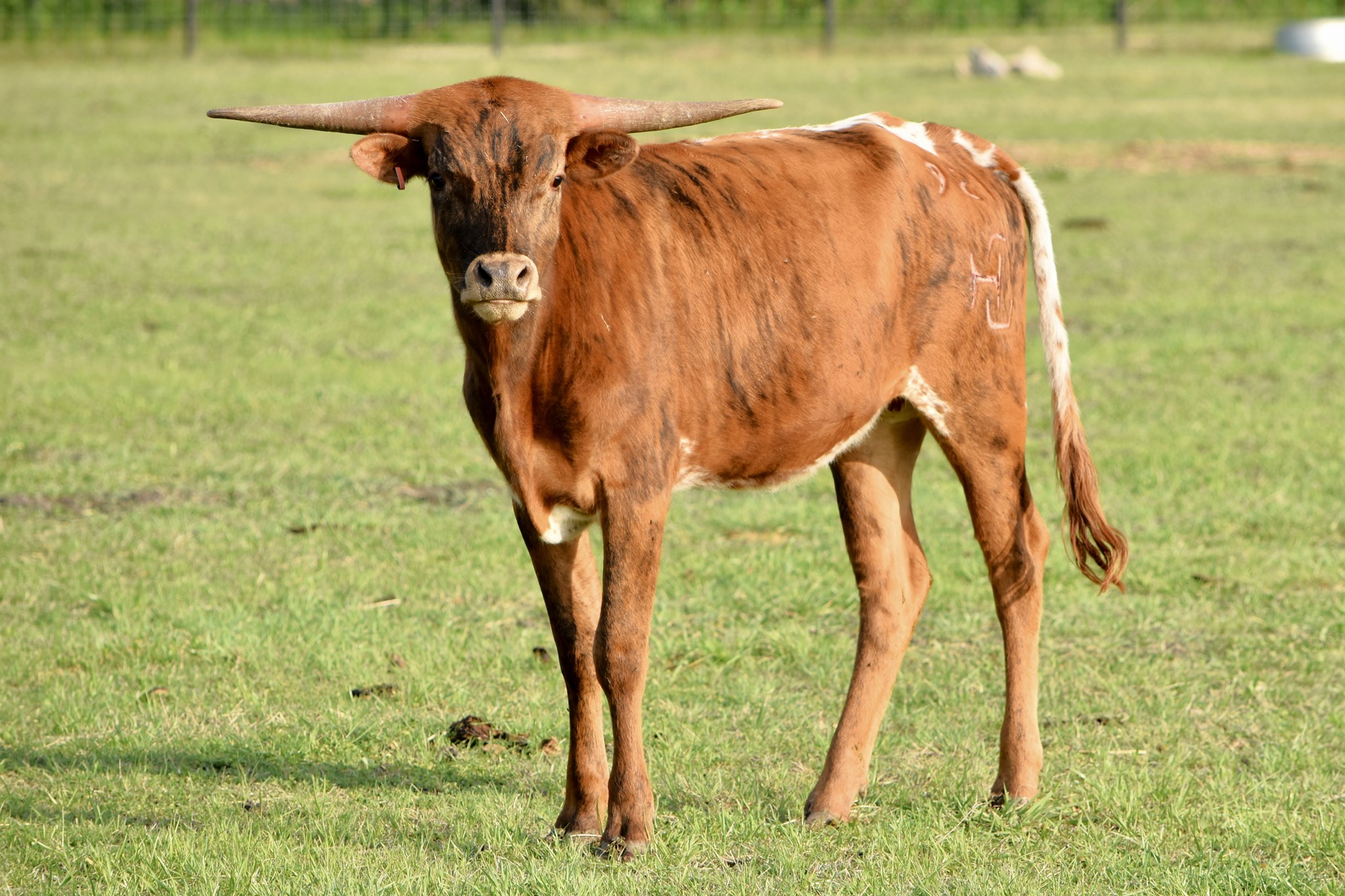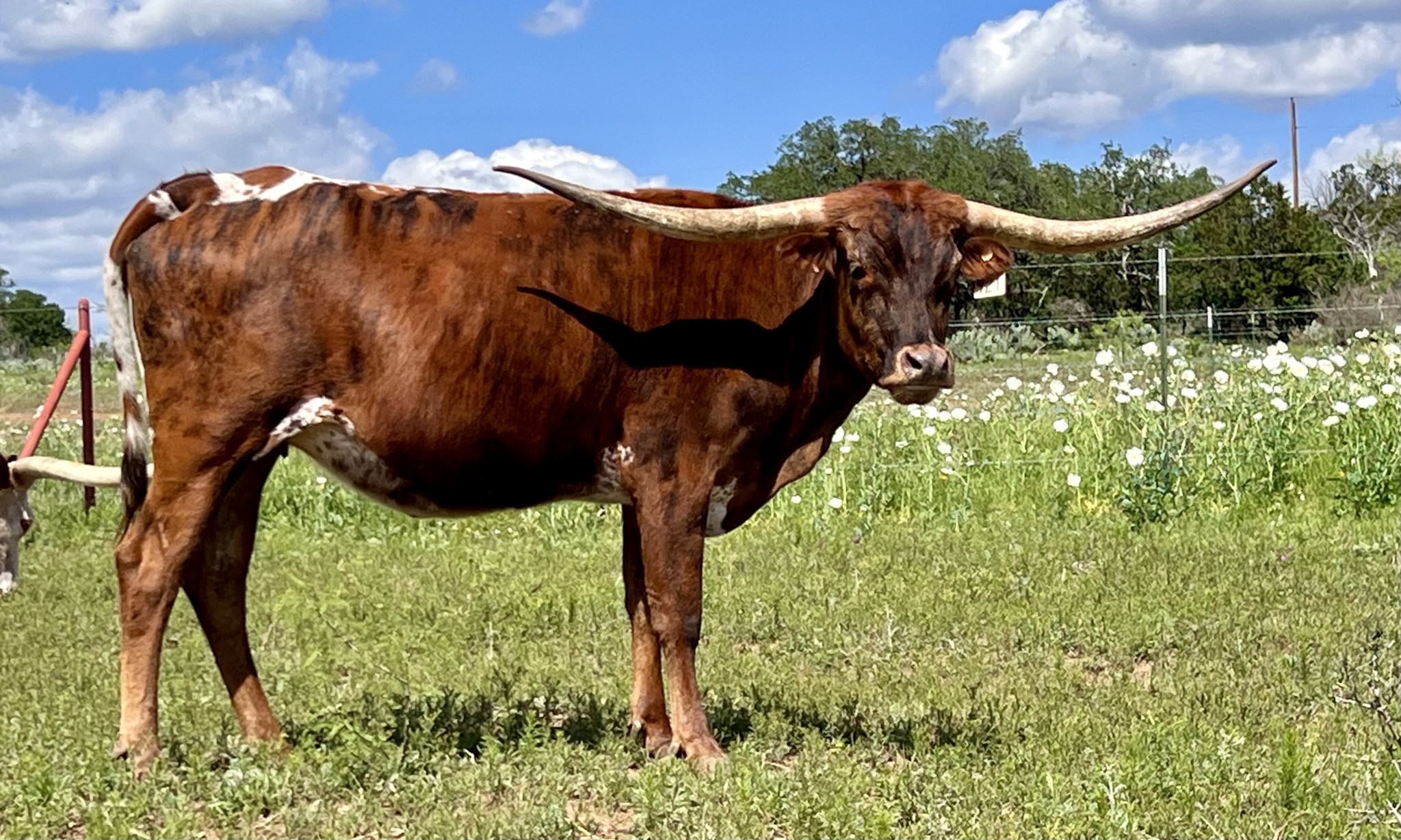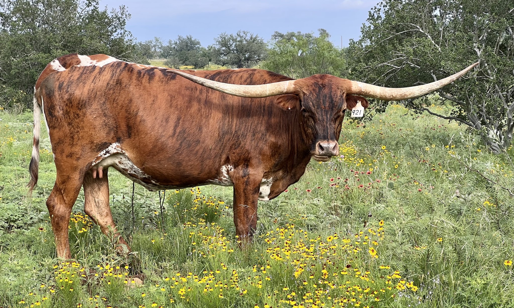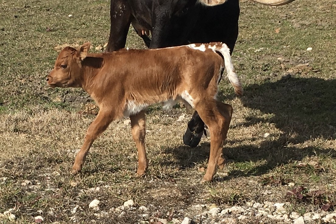 PASSION has a gorgeous brindle color and low lateral horns, just like her Cash Cow mother. She's both easy on the eyes and has easy going temperament.