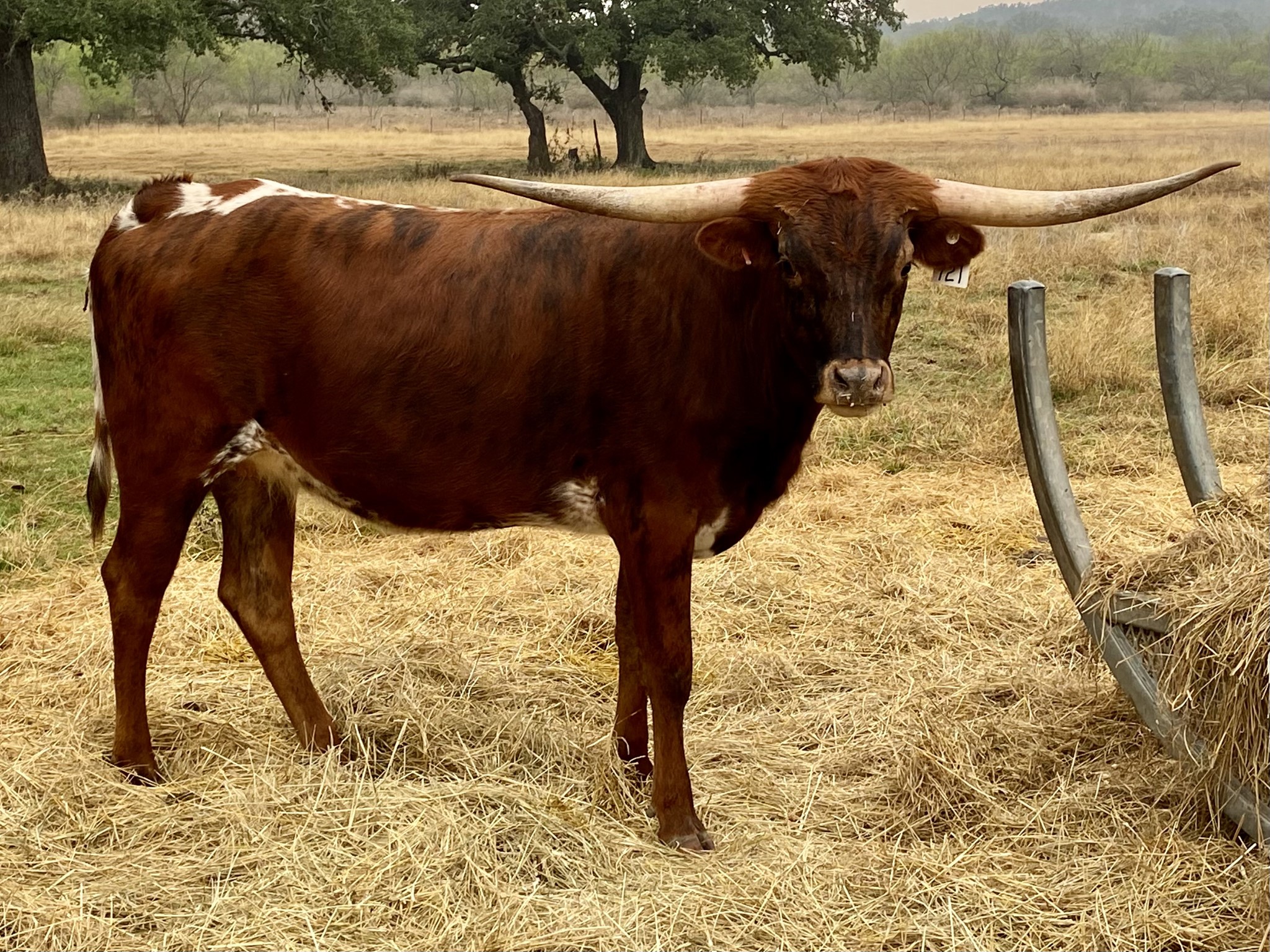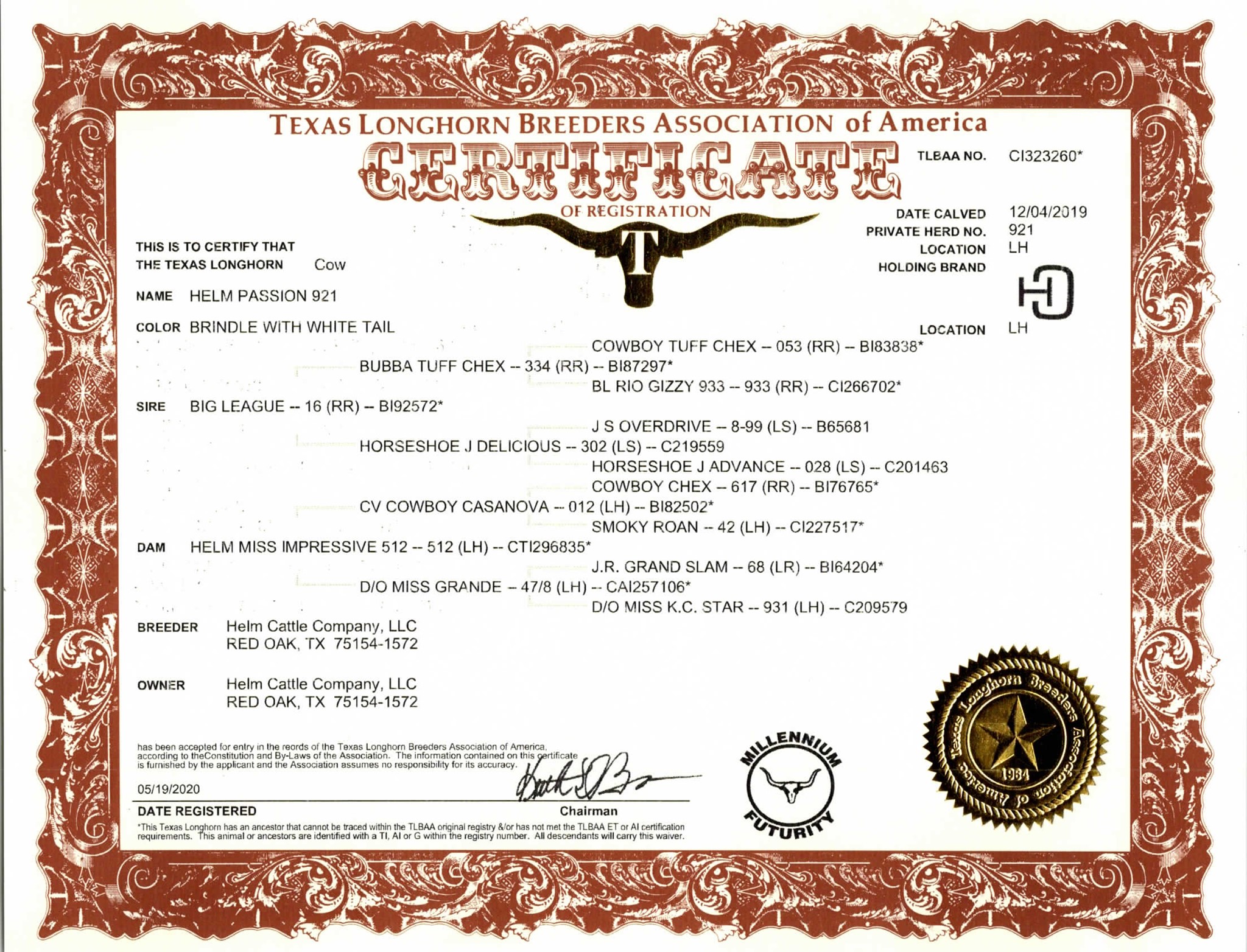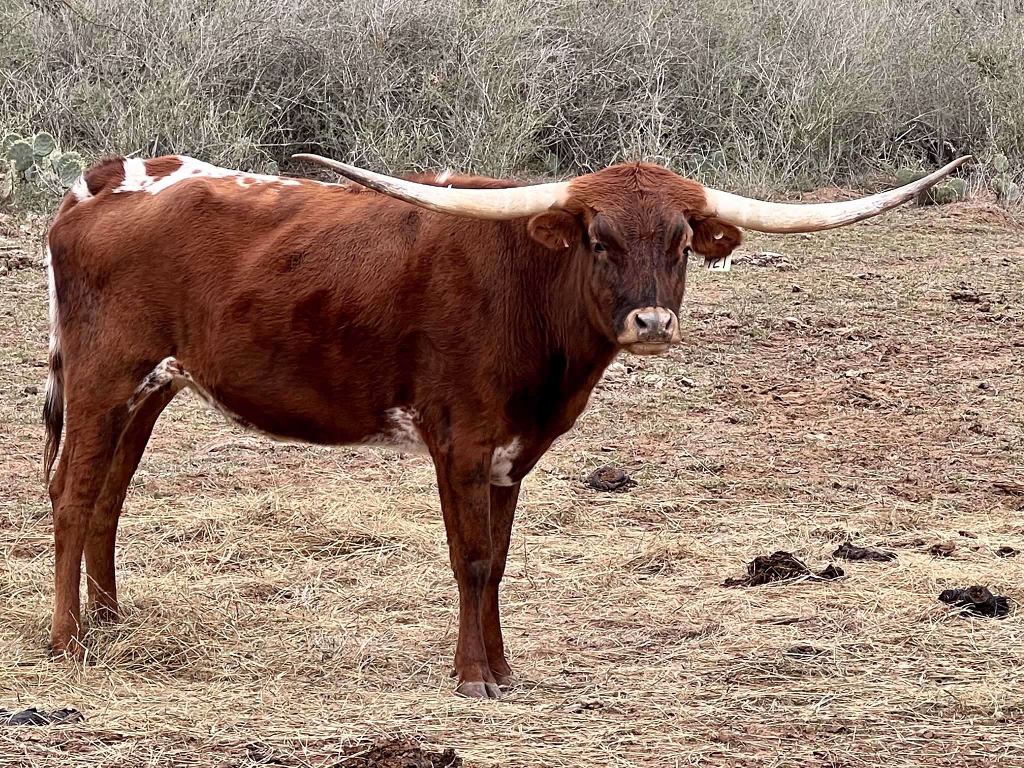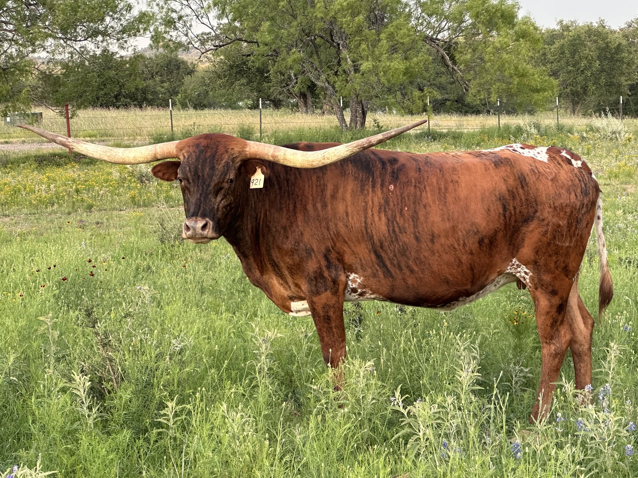 PASSION has a gorgeous brindle color and low lateral horns, just like her Cash Cow mother. She's both easy on the eyes and has easy going temperament.