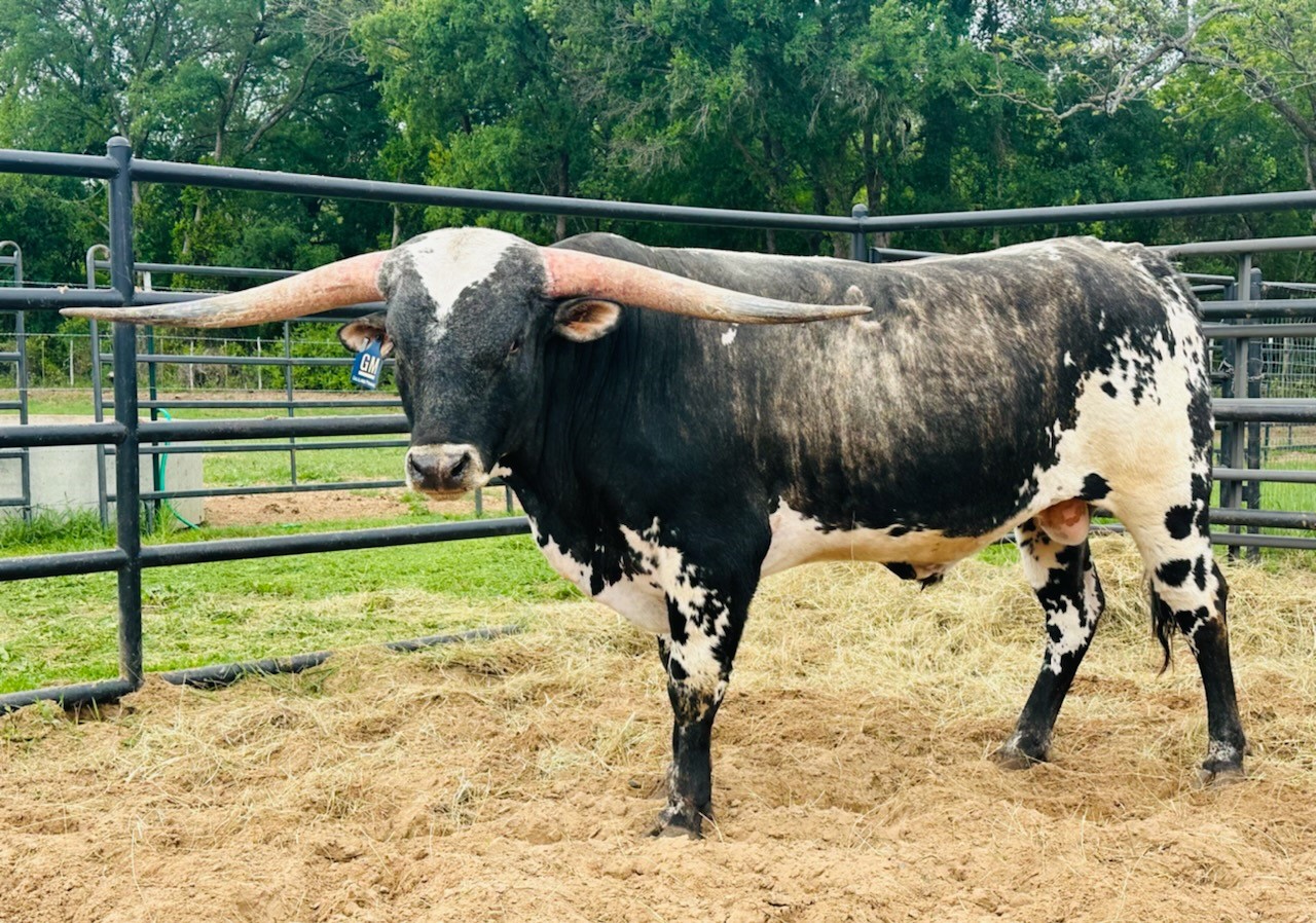BM's COLOR IS A RARE REVERSE BRINDLE DARK BLUE GRULLA--HENCE THE NAME.COMBINE THAT WITH A PEDIGREE OF 30 OVER 80'' & YOU HAVE UNPARALLELED VALUE: THERE ARE 2 OVER 100'';5 OVER 90'';24 OVER 80''; WINNER OF HIS CLASS IN THE DOUBLE DOWN FUTURITY AUGUST 13, 2022 IN COLORADO. SCROTAL CIRCUMFERENCE-35.5cmCURRENT OWNERS GILLILAND/MANNING/KOTT