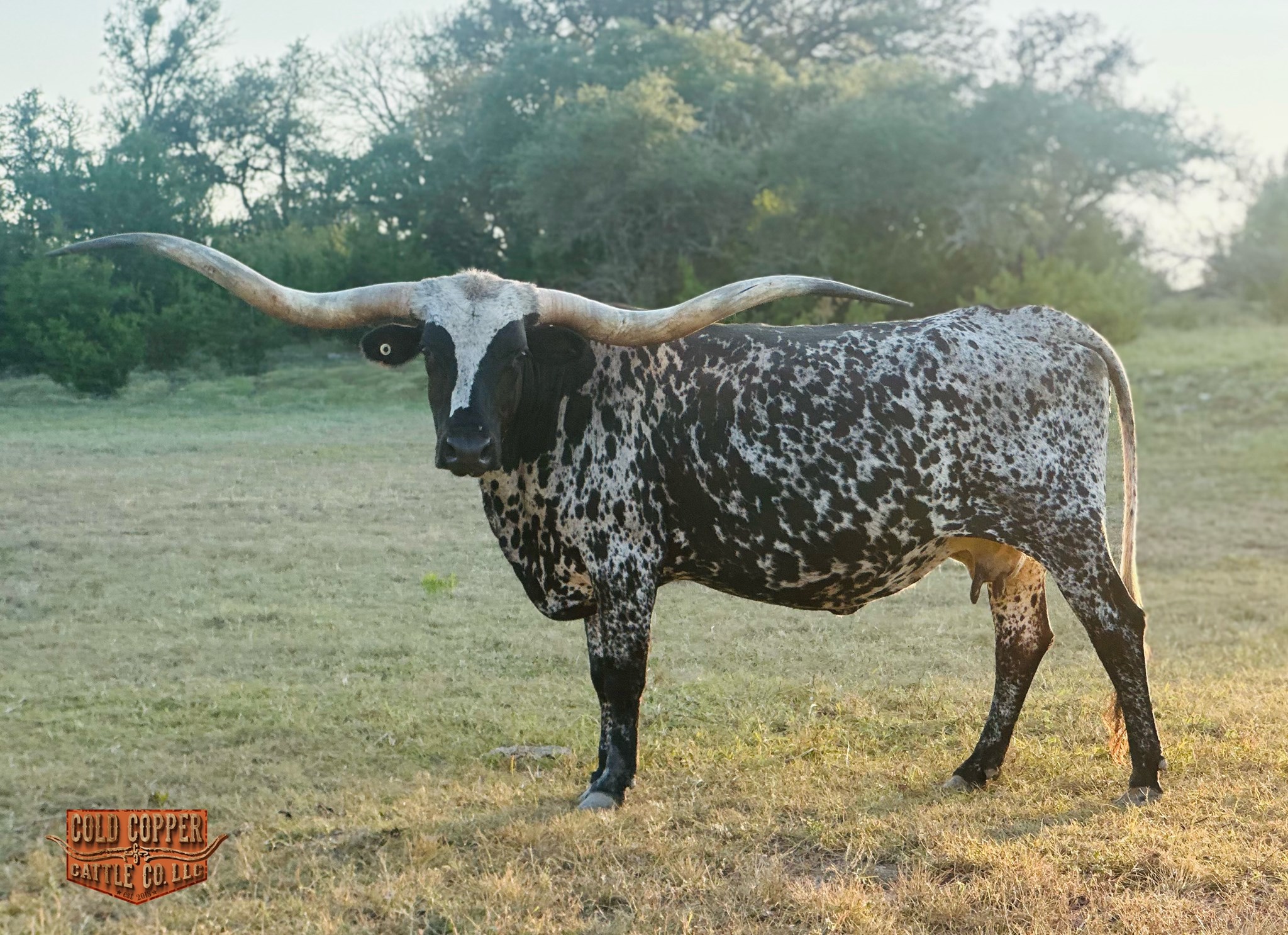 FLASHY B&W COW! SHE IS THE LONGEST BLACK AND WHITE DRAG IRON DAUGHTER COMING IN AT 91.25" TTT. CURRENTLY HAS A FROSTY BLACK AND WHITE HEFIER BY THE LATE GREAT DELTA LUCKY ACE!