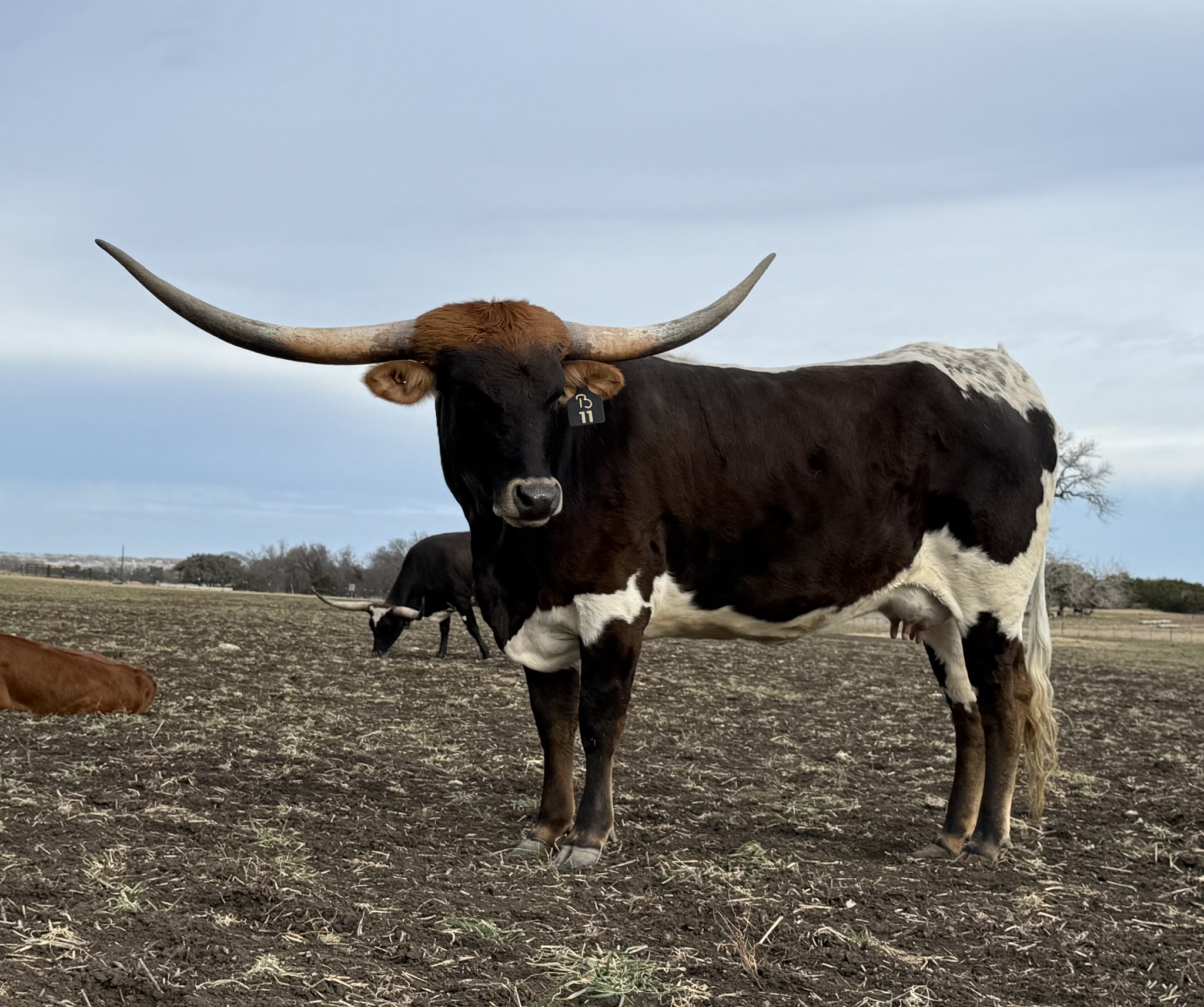 Bux 11 is out of Hubbells 20 Gauge and Sheza Whip Slinger BBR, Her pedigree includes icons such as Concealed Weapon, JP Rio Grande, AF Gun Slinger, and Sittin Bull, each contributing to her natural horn direction, depth of body, and elegant femininity. She’s already showing the signature 20 Gauge refinement and the strength and substance passed down from her Sheza Whip Slinger dam. With her striking parker brown and white color pattern, smooth topline, and perfect balance, this heifer embodies beauty backed by elite genetics.