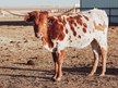 Flashy heifer with black spots mixed in her red and white. Genetics bring in TCC Houdini, Cowboy Tuff Chex, RHF Sharpshooter, HL Rio Rose, WS Sun Rise, Sittin Bull, and Texana Van Horne. Her Dam is one of our best true black cows here and her sire, the late TKR Royal "T" is #1 in horn production for 2018 bulls.