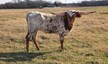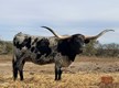 Beautiful spotted heifer out of Horn Showcase bronze winner, KDK Wildfire who is now over 94"TTT. Her dam, TLS Gingersnap is now over 84" as a 5 year old. This calf has POTENTIAL! Take a long look. Her spots are really coming out making her one of the flashiest calves in the pasture.
