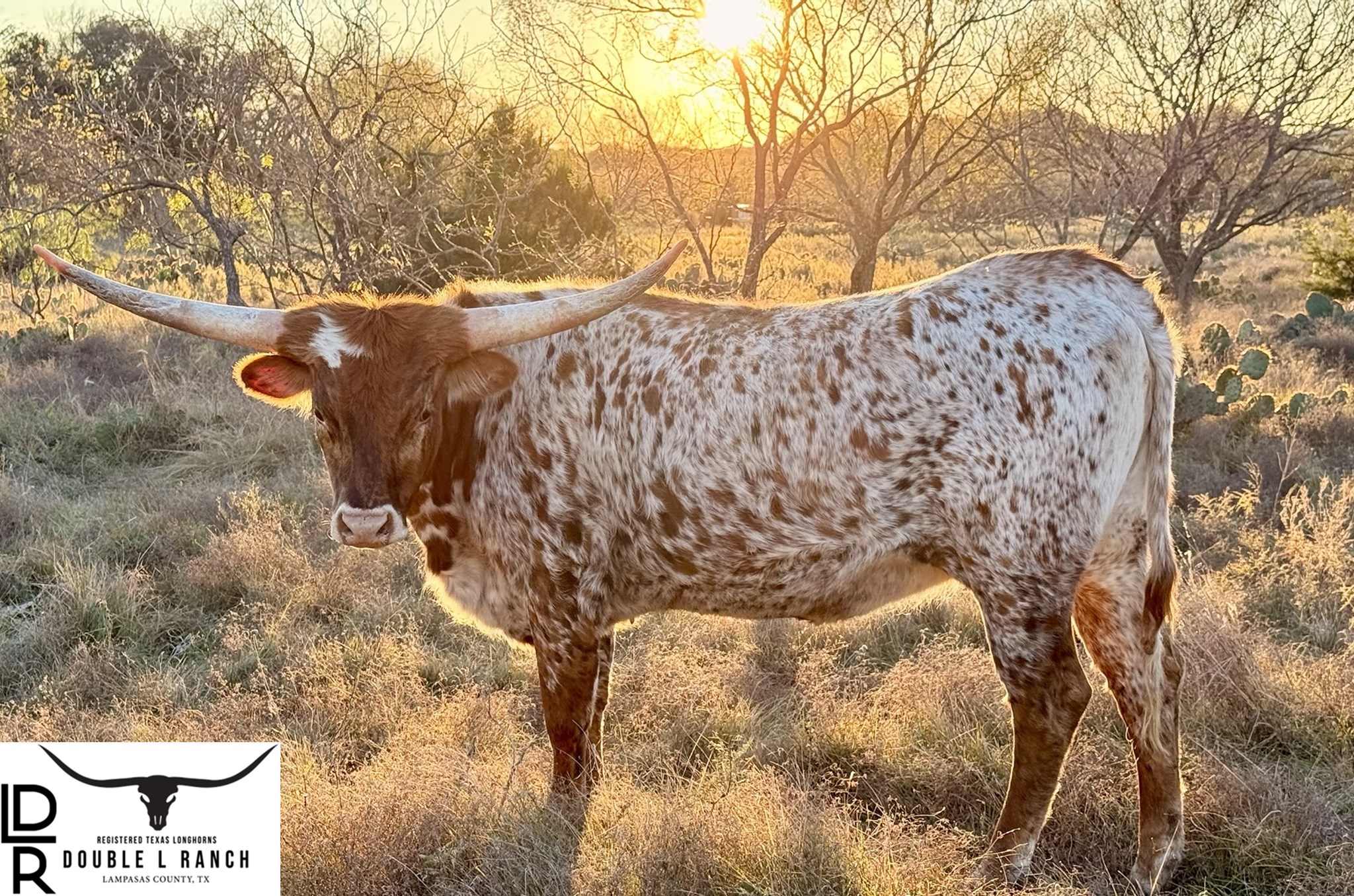 A stunning heifer with color and flash for days! She is well built and has a stacked pedigree. KDK Wildfire on top with a 95" TTT, multiple awards won! TLH Cheetah on bottom with an 81" TTT that has an incredible twist! We are excited to bring her into our ranch and watch her grow!