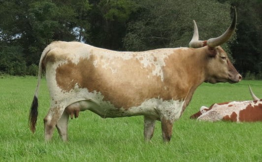 Bonita won first place at every futurity she was entered in. She’s a great mother who raises big calves. Just look at how she’s put together; long, deep, feminine. Look down her back, from her head to her tail to see just how far apart her hip bones are. And she always stays fleshy, even in the winter months. There's consistency in this maternal line. She is bred.