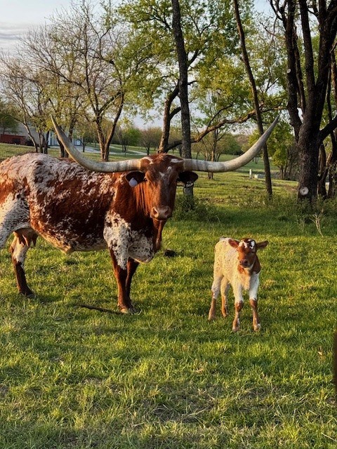 Meet Tulip, a striking cow with horns stretching an impressive 73 inches. Her auburn coat is beautifully speckled with white patches, creating a stunning contrast. Despite her size and powerful horns, she is incredibly gentle, often allowing you to approach her with ease. She’ll even eat out of your hand, her calm demeanor and friendly nature making her a fan favorite.