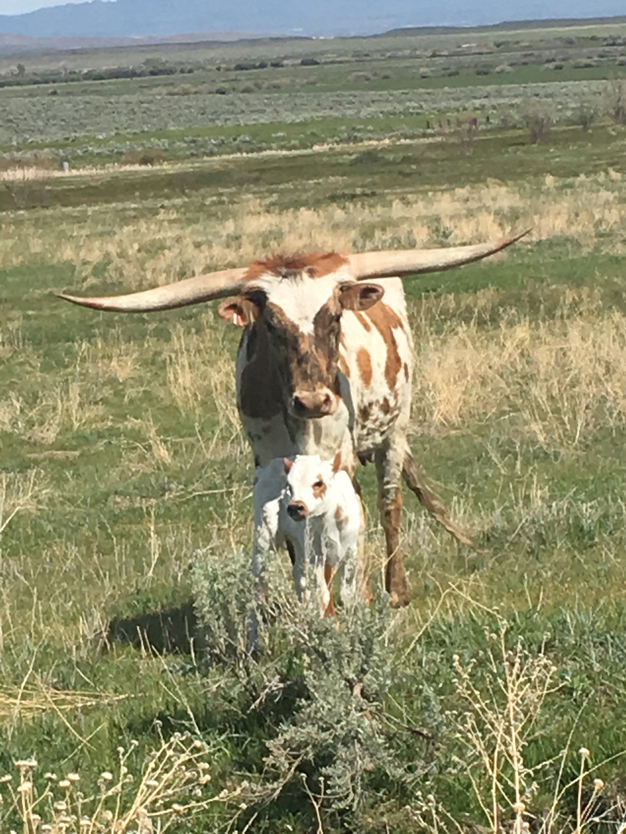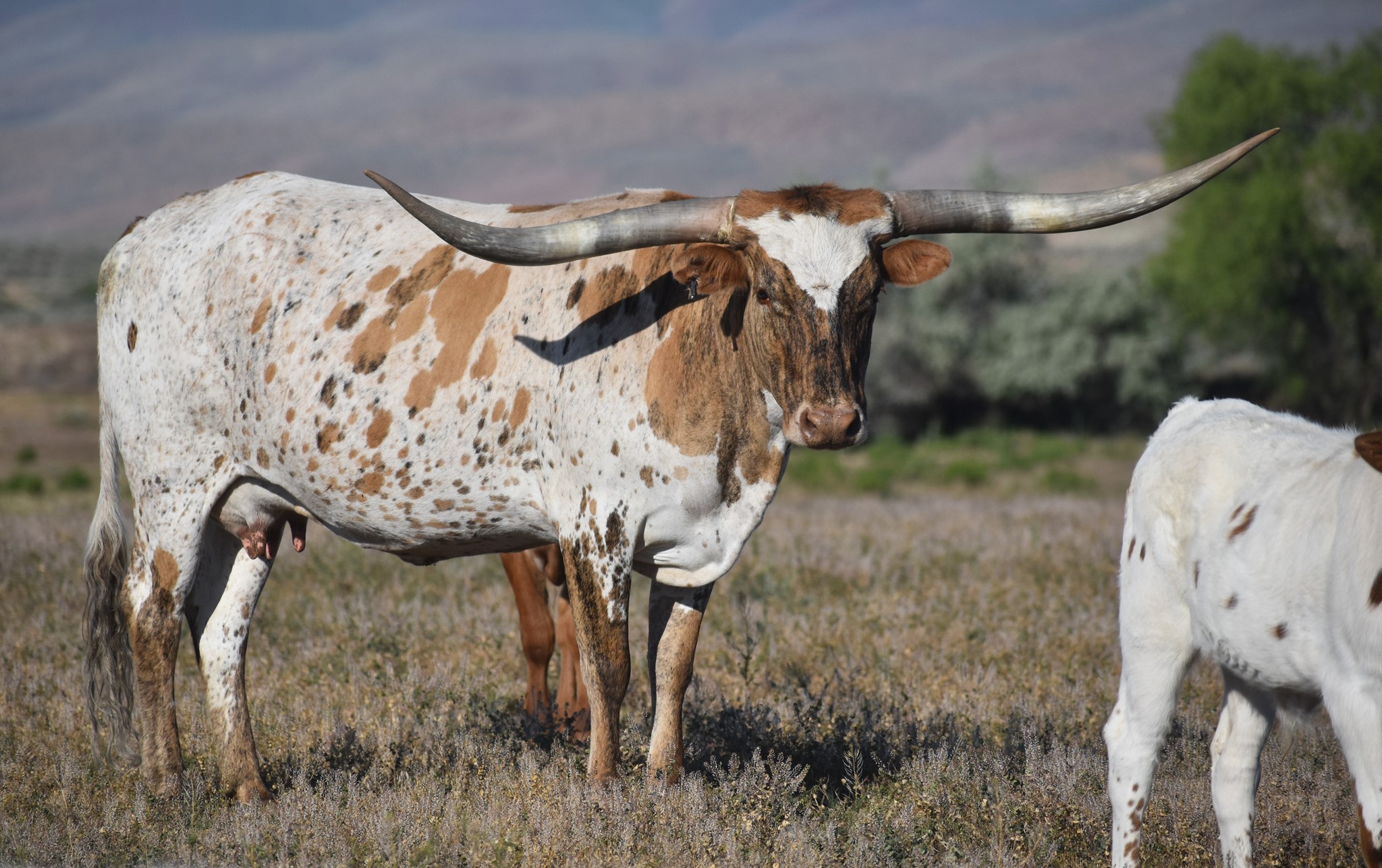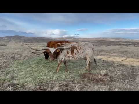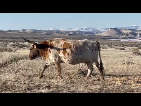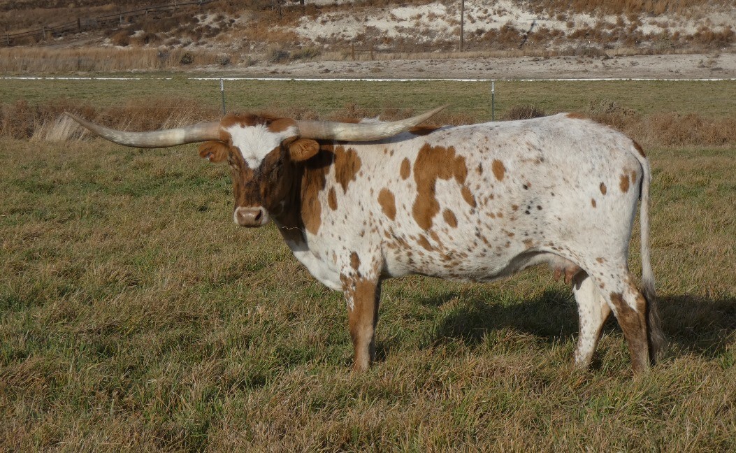 Really beautiful brindle cow with flat horn. Bred to Dunn Pay Dirt for a Spring 2023 calf.