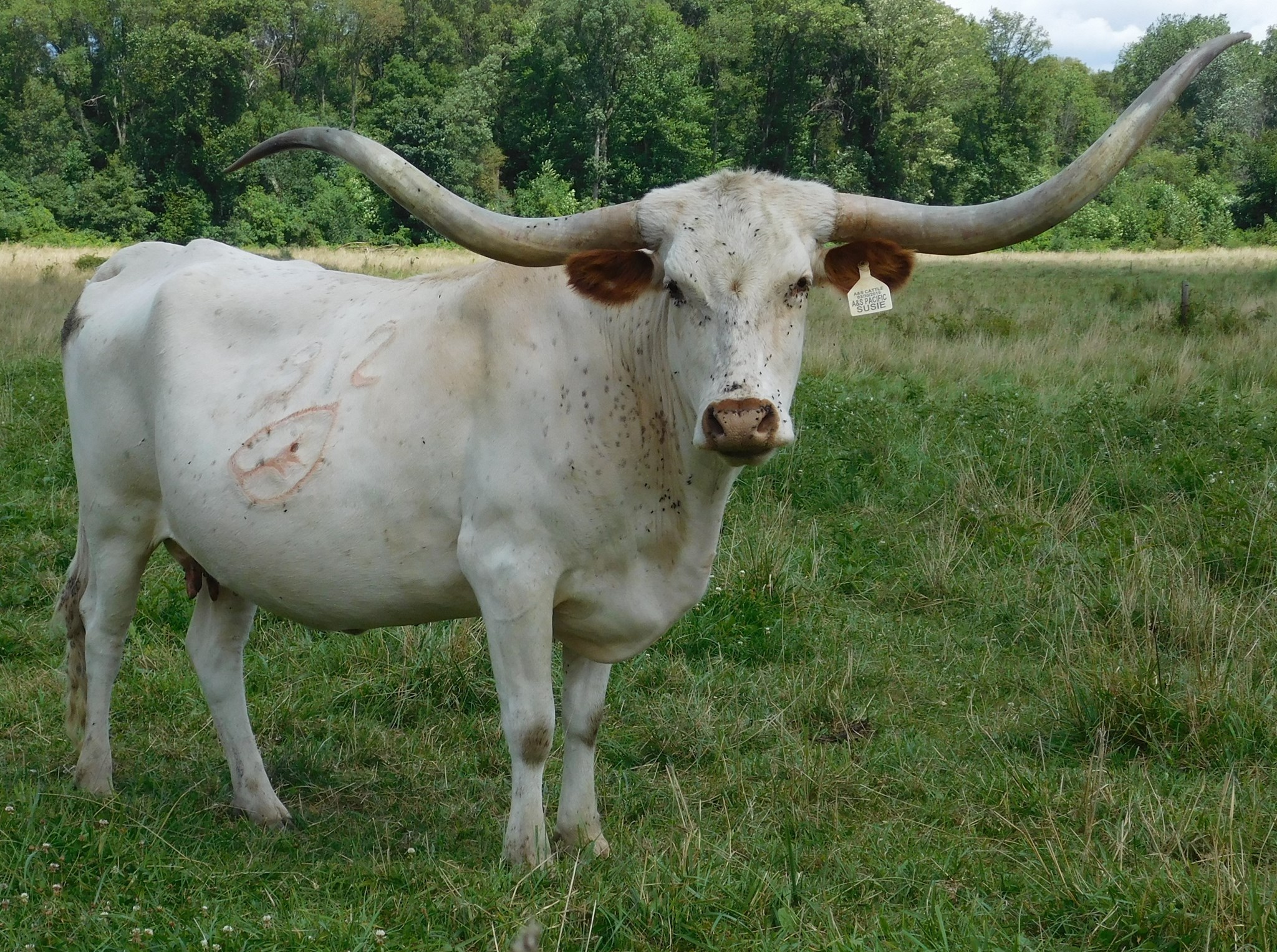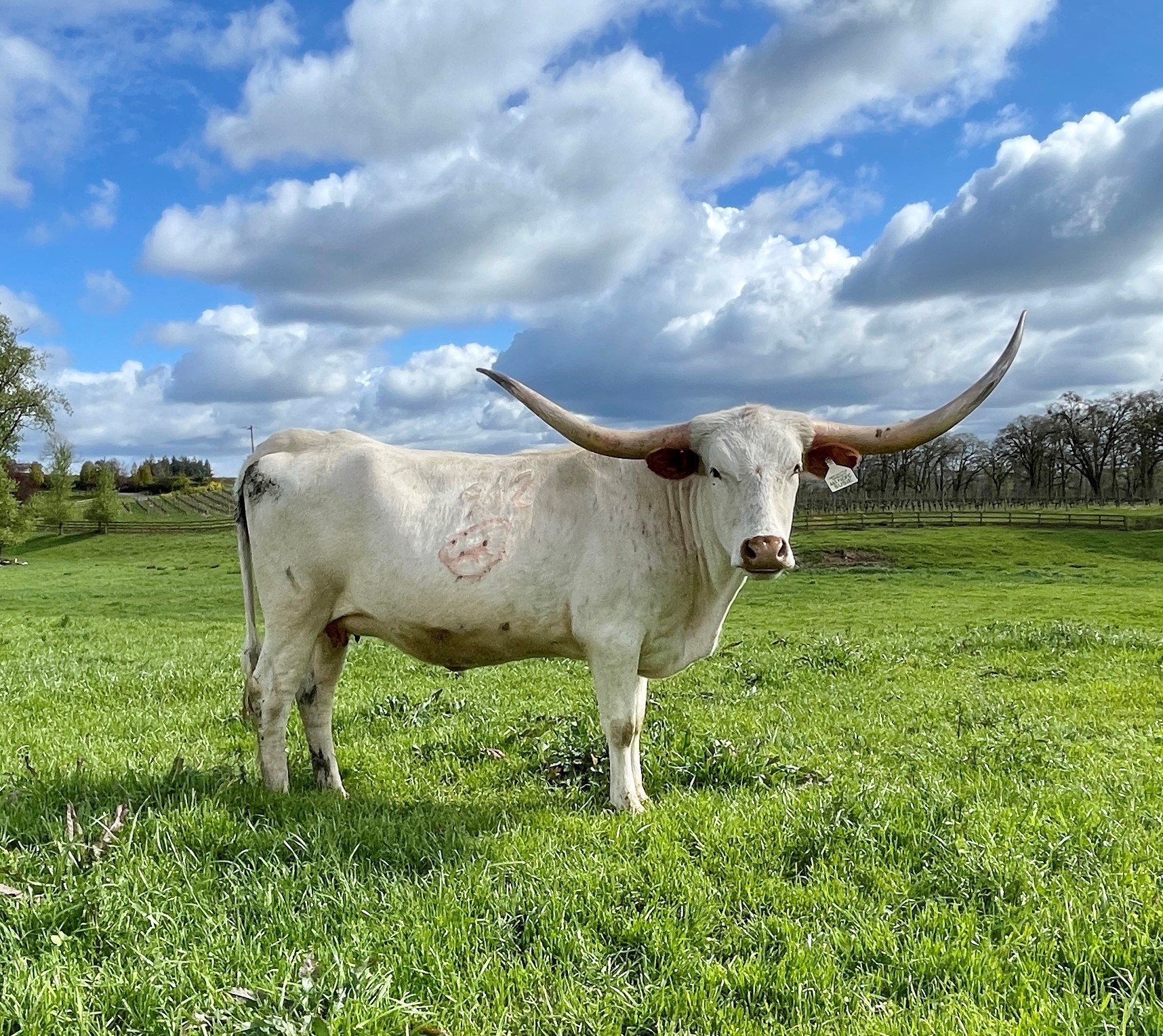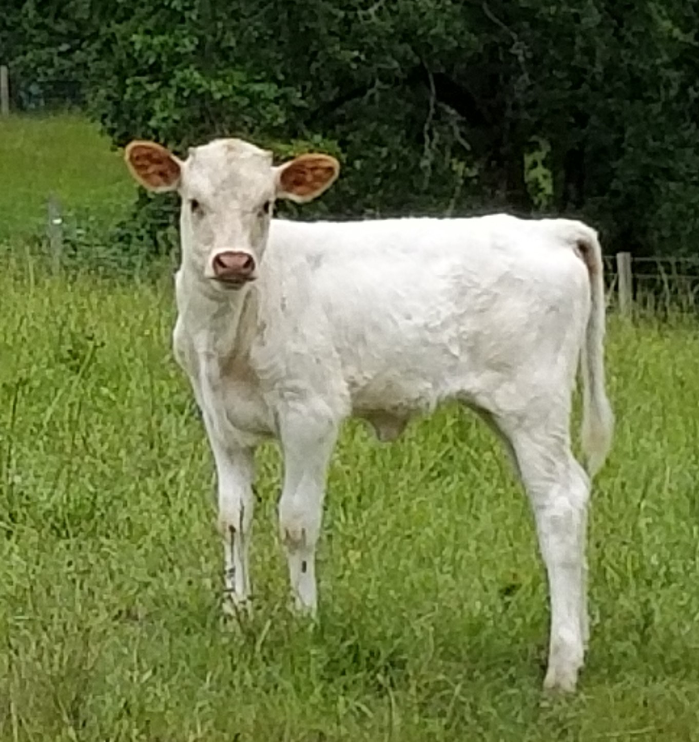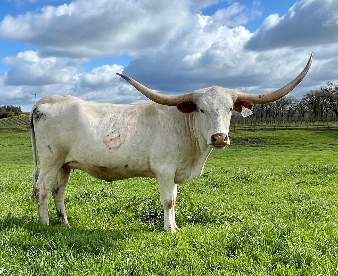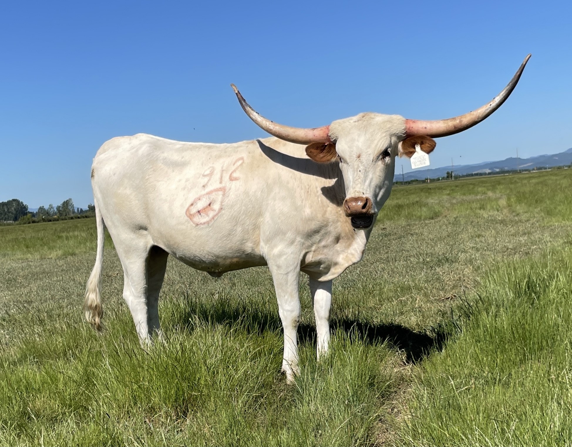 Great breeding on this heifer. Large frame with a lot of horn already. Unfortunately she calved (a little bull) during the unexpected April snow. He was very weak when we found him and he did not make it, but she was an excellent mother to him until he passed.
